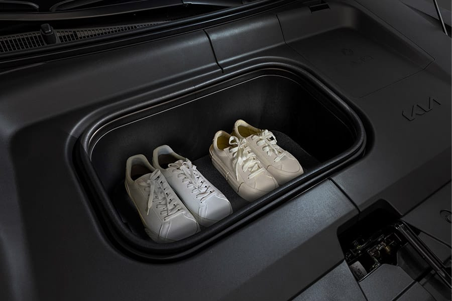 El maletero delantero de 25 litros ofrece espacio adicional para lo que necesites, desde cables de carga hasta equipo de viaje, listo para mantener tus objetos seguros y accesibles donde quiera que vayas.