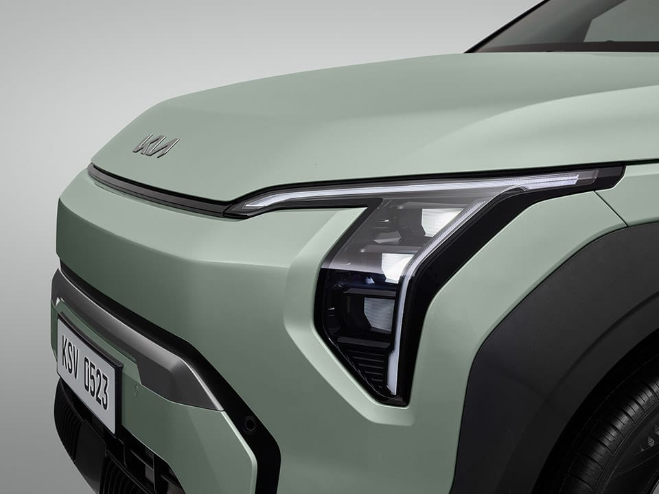 El diseño del Kia EV3 combina líneas modernas y proporciones robustas, reflejando la identidad audaz de la nueva era eléctrica de Kia. Cada detalle fue pensado para transmitir innovación, eficiencia y carácter.